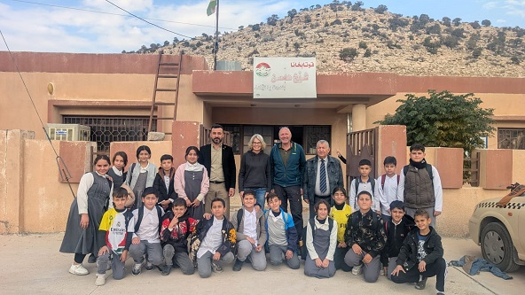 الرحالان في مدرسة قرية الشيخ حسن مع اطفال المدرسة