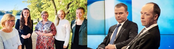 والمتابع للشأن السياسي الفنلندي يلاحظ ان أحزاب الحكومة الخمسة تقودها نساء، شابات وجميلات وعرفن بالحزم والحنكة، في مواجهة جائحة الكورونا وانعكاساتها على الجانب الاقتصادي والاجتماعي، خصوصا رئيسة الوزراء الشابة، التي اكتسبت شعبية لنفسها ولحزبها والحكومة، وأصبحت رمزا محبوبا للنساء والشباب الفنلنديين.