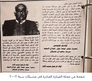 في عام ٢٠٠٣ توفي حبيب كادو في مشيكان فكتبت عنه مقالة (اعيد نشرها مصورة هنا)، امانة في كل ما كتبته عن حبيب هو النزر اليسير مما كان يقوم به في حياته، هنا اهيب بالفنانين والشعراء خصوصا الأستاذ لطيف في كتابة قصيدة مغناة عنه، أحيي أولاده في السويد وأميركا، وكل اقربائه، وأصدقائه، ومحبّيه.